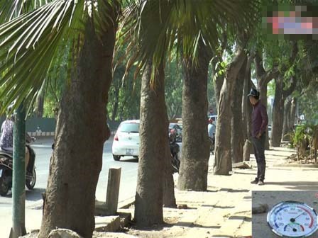 Nhiệt độ mặt đường đầu giờ chiều qua đo được là gần 60 độ C. Dưới những tán cây xà cừ sắp bị chặt bỏ, kết quả thật bất ngờ.