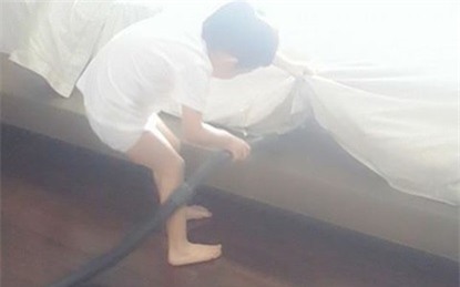 Hà nghĩ có thể dạy con ở mọi lúc, mọi nơi. Ở nhà, Hà tập cho con trai làm những việc lặt vặt dù có người giúp việc.
