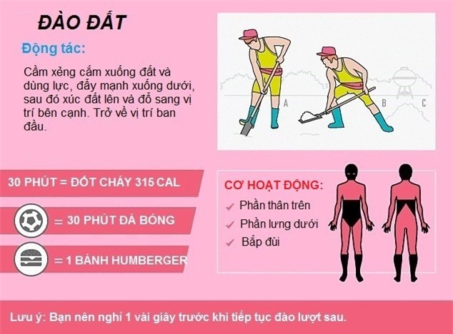 Chuyên gia Andrew khuyên khi làm việc đào đất, bạn nên nghỉ một vài giây giữa mỗi lượt để cơ hồi phục, điều đó sẽ mang lại nhiều lợi ích hơn.