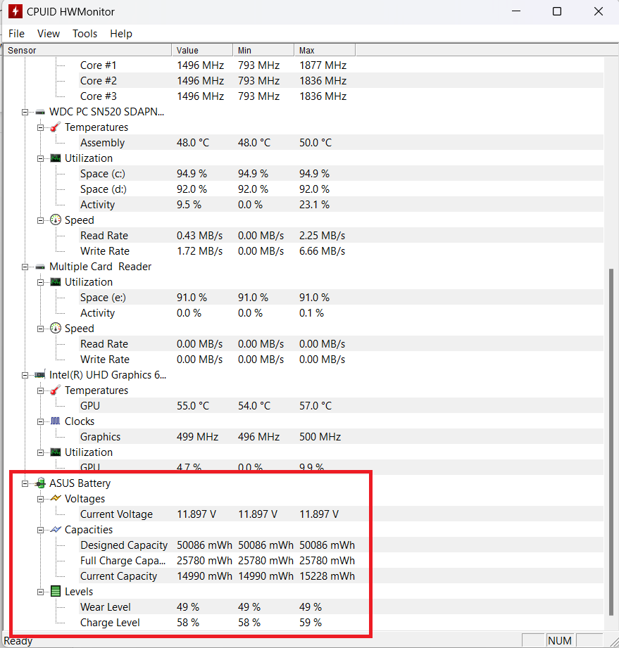 Để kiểm tra tình trạng chai pin của laptop chạy Windows, bạn có thể nhờ đến phần mềm miễn phí mang tên gọi HWMonitor.