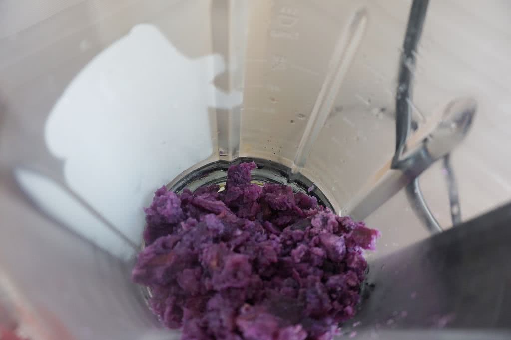 Bước 2: Cho khoai lang vào máy xay sinh tố, thêm chút nước lọc vào rồi xay nhuyễn.
