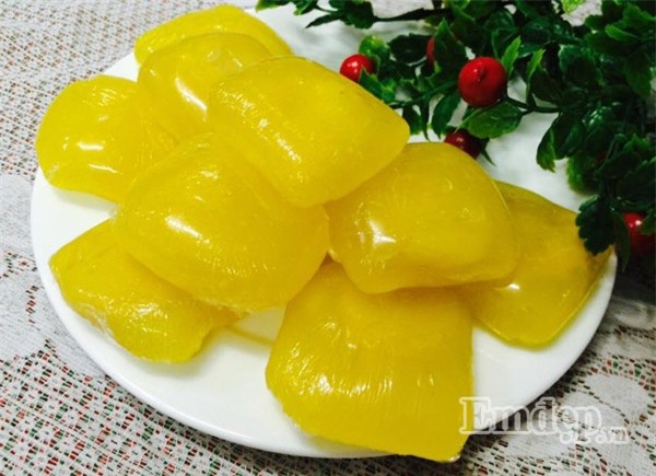 Sau khi bánh nguội và bày lên đĩa thưởng thức. Vỏ bánh trong veo, dai giòn sần sật với vị ngọt nhẹ lại thơm mùi nước hoa bưởi từ phần nhân đậu xanh bùi béo rất là ngon miệng.