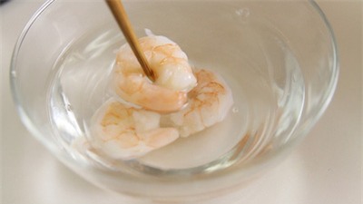 ![]() | ![]() Đun sôi một nồi nước khác với một chút muối, cho tôm vào luộc chín rồi vớt ra bát nước mát để giữ tôm được giòn. Vớt tôm ra đĩa. |