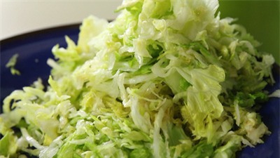![]() | ![]() Bắp cải cũng thái sợi mỏng. |