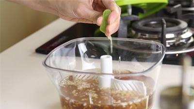 ![]() | ![]() Khi hỗn hợp đường đã nguội hẳn, chỉ còn hơi ấm, bạn thêm tỏi bằm, nước mắm, sa tế, nước cốt 2 quả chanh vào rồi trộn đều. |