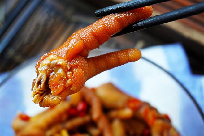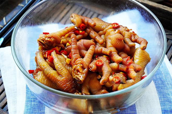 Món chân gà ngâm tương có màu sắc đẹp mắt, hương vị hấp dẫn. (Ảnh: Sohu)