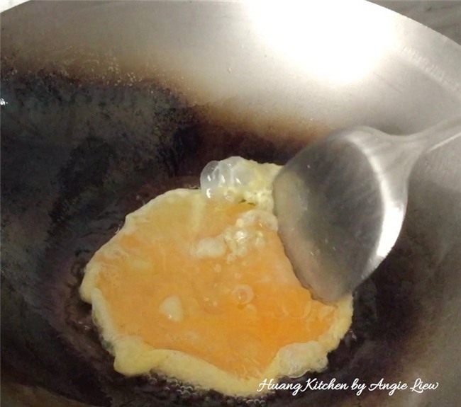 Làm nóng chảo, đổ trứng vào đảo đều.