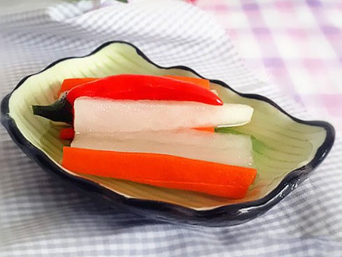 Từng miếng củ cải trộn chua ngọt giòn ngon mát lành ăn trong bữa cơm kèm thịt kho, cá kho hay các món đồ chiên đều ngon tuyệt.