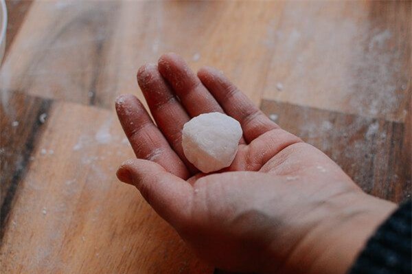 Chia bột thành 12 viên tròn nhỏ bằng nhau.