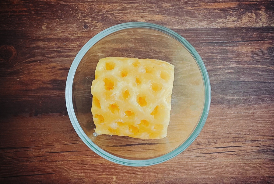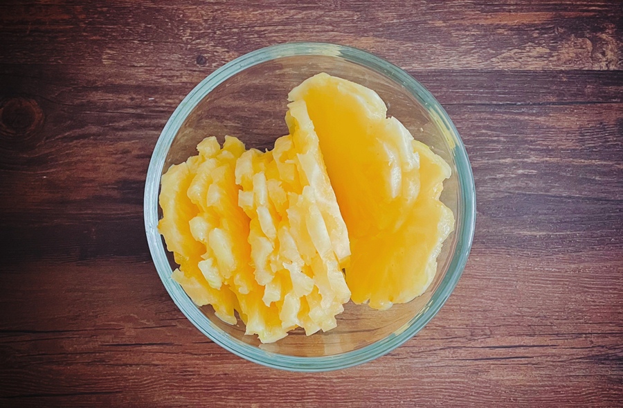 Dứa gọt vỏ, loại bỏ mắt dứa rồi rửa sạch với nước.