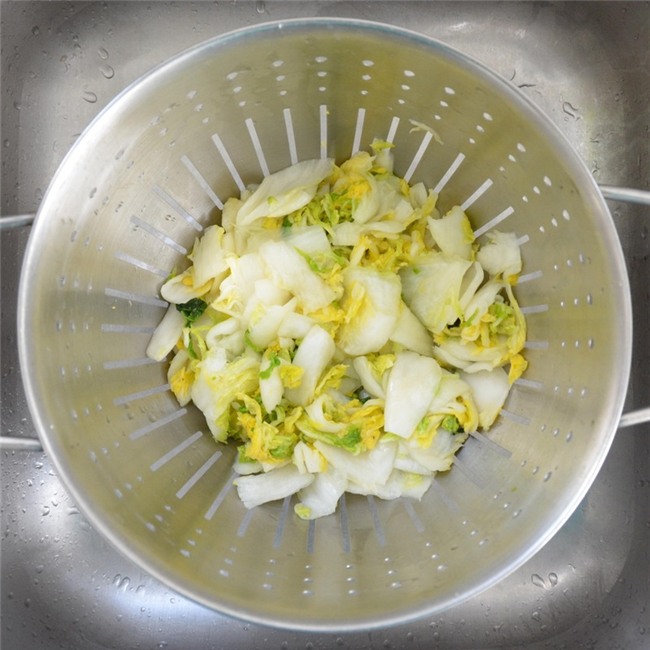 Rửa sạch cải thảo dưới nước lạnh 3 lần, vắt cho sạch nước.