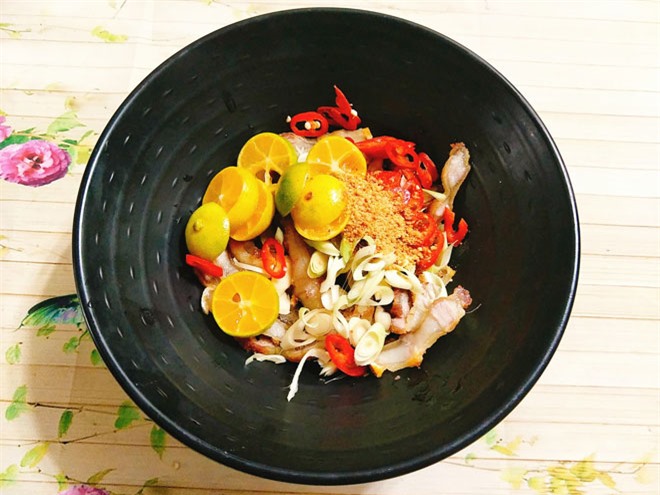 Quất đem cắt làm 3 và bỏ hết hạt, ớt thái miếng vát mỏng, sả bào mỏng.