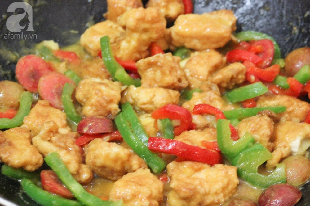 Nếu bạn là một người yêu thích món gà chiên thì không được bỏ qua món gà chiên xốt mận chua ngọt cực kì hấp dẫn này! Miếng gà với phần thịt nóng hổi, lớp sốt sền sệt của dứa thơm nức kết hợp với mận chua chua khiến món gà có vị chua mặn ngọt tự nhiên vô cùng kích thích. Bạn không cần phải chấm thêm bất kì loại nước chấm nào bởi các miếng gà đã quyện đều gia vị rất đậm đà và ngon bá cháy rồi!