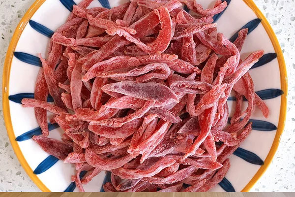 - Phơi khô: Từng quả mứt được xếp ngay ngắn trên khay, phơi dưới ánh nắng nhẹ hoặc hong trong lò nướng. Qua thời gian, chúng khô lại, nhưng vẫn giữ nguyên độ dẻo thơm.