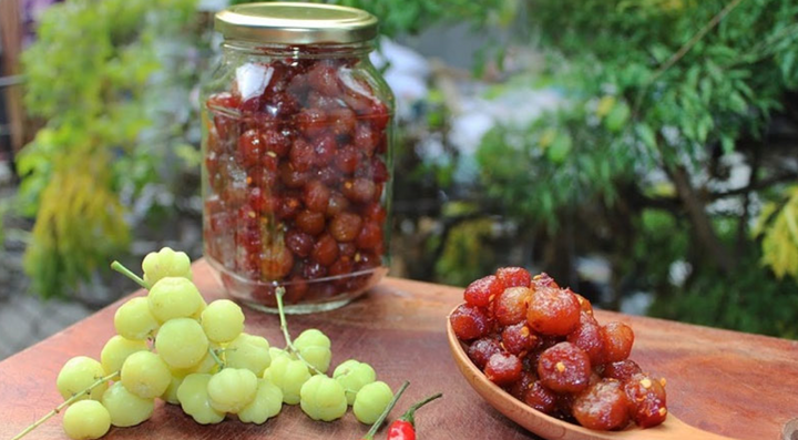 - Sơ chế chùm ruột: Trái chùm ruột được rửa sạch và ngâm trong nước muối, như cách ta chuẩn bị cho một khởi đầu mới mẻ. Sau đó, từng quả được vắt nhẹ, làm giảm bớt vị chua, mà vẫn giữ nguyên độ tươi mọng.