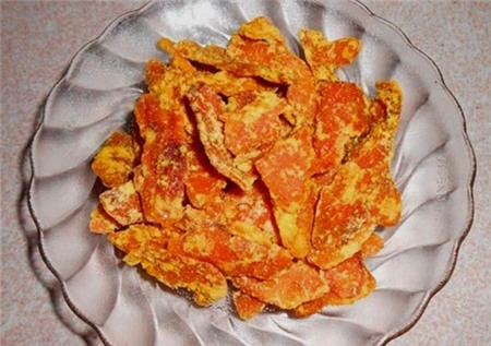 10. Đổ mứt nghệ ra chiếc mâm lớn cho nguội.