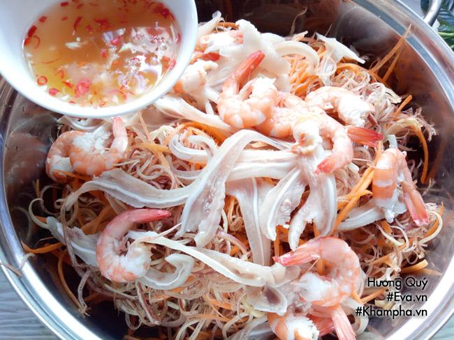 Rưới phần nước trộn nộm xung quanh rồi trộn đều.