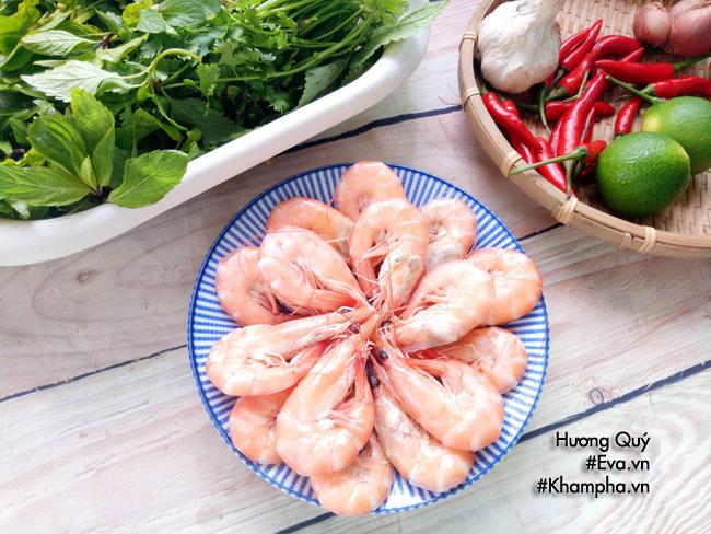 Bước 2: Cà rốt gọt vỏ bào sợi mỏng. Tôm, tai heo rửa sạch đem luộc chín. Phần tôm bóc vỏ bỏ đầu, tai heo thái miếng mỏng. Rau thơm các loại rửa sạch, ngâm nước muối loãng rồi thái nhỏ.