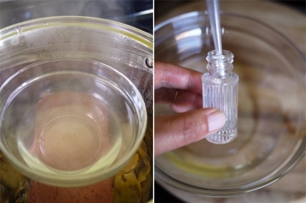 Đợi nước hoa hồng trong bát nguội hoàn toàn trước khi dùng ống nhỏ giọt
