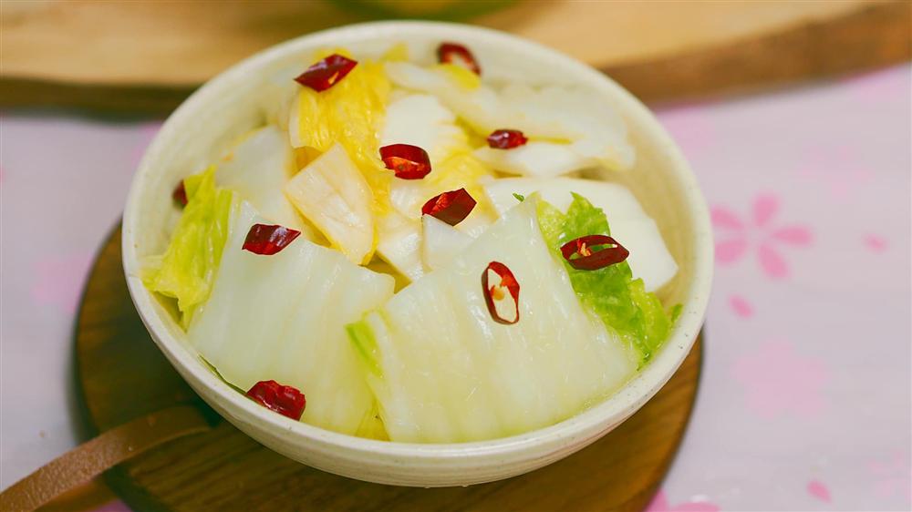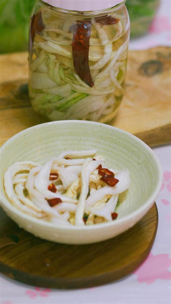 - Sau 1 ngày, cải thảo ngấm có thể ăn được. Khi ăn thái thành từng miếng vừa ăn, trộn đều với gừng, tỏi, ớt băm nhỏ.