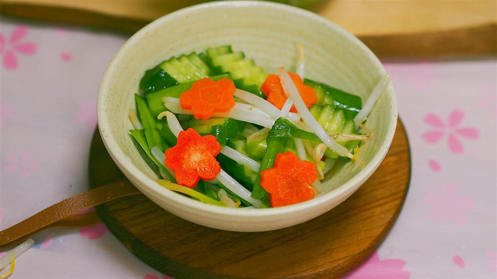 - Trộn đều giá đỗ, hẹ, cà rốt, dưa leo và hành tím rồi xếp vào bình và đổ phần nước chua ngọt cho ngập mặt giá.