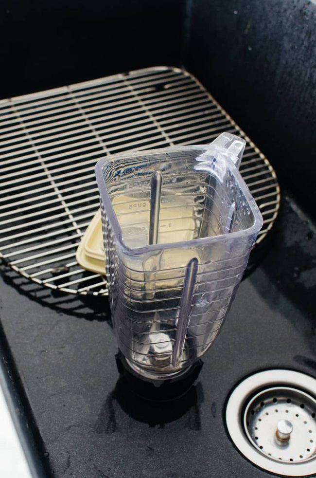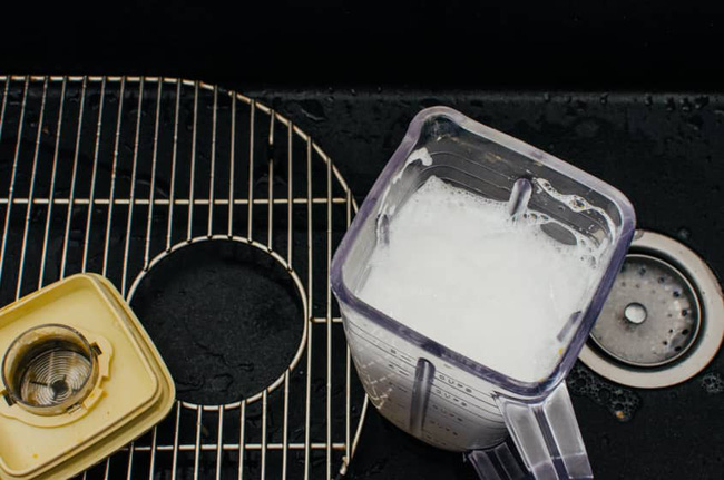 Phương pháp làm sạch này rất dễ dàng, chỉ cần nước nóng, một chút nước rửa bát và vài giây. Nếu máy xay sinh tố của bạn tích tụ mảng bám lâu ngày hoặc xỉn màu, bạn cũng có thể thêm một giọt giấm hay một ít nước cốt chanh sẽ hiệu quả hơn.