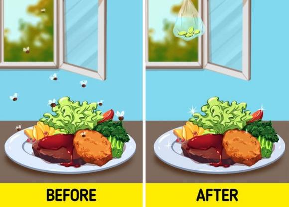 Xua đuổi ruồi bằng cách sử dụng đồng xu bên trong túi có khóa zip chứa đầy nước