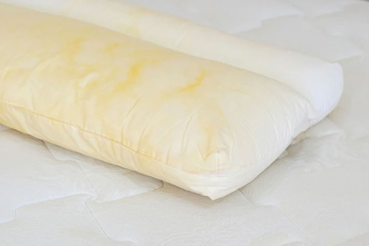 Trong quá trình ngủ, mồ hôi, dầu thừa, mỹ phẩm dưỡng da và tóc... sẽ thấm trực tiếp vào ruột gối qua lớp vỏ. Bên cạnh đó, bụi bẩn trong không không khí và các tế bào da chết có thể bám vào ruột gối khiến nó bị mốc cũng như ố vàng sau một thời gian sử dụng.