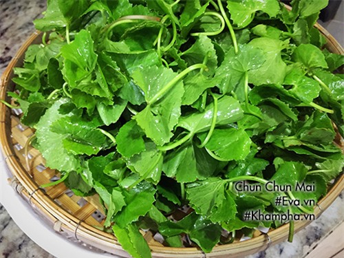 Bước 1: Rau má nhặt bỏ lá úa, gốc già. Sau đó rửa sạch, ngâm nước muối loãng khoảng 30 phút. Vớt ra rổ để ráo nước.