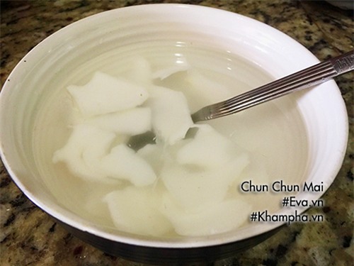 Bước 3: Dừa chọn trái vừa, không quá non để có thể lấy phần cơm dừa. Cho nước dừa ra tô, trái dừa bổ đôi dùng thìa nạo phần cơm dừa cho vào cùng.