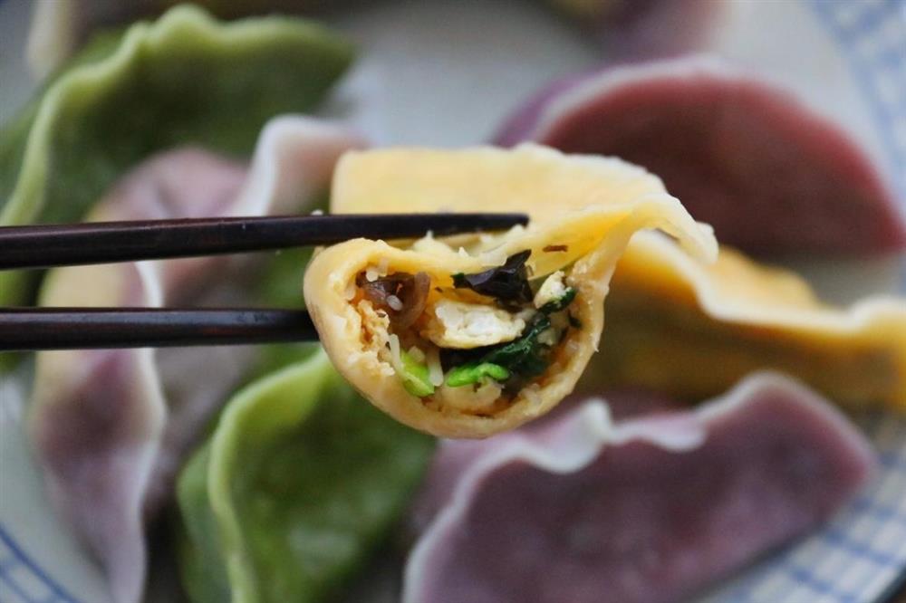 14. Những chiếc sủi cảo nhiều màu sắc trông thật hấp dẫn, ăn kèm với nước tương hoặc tương ớt đều thơm ngon.