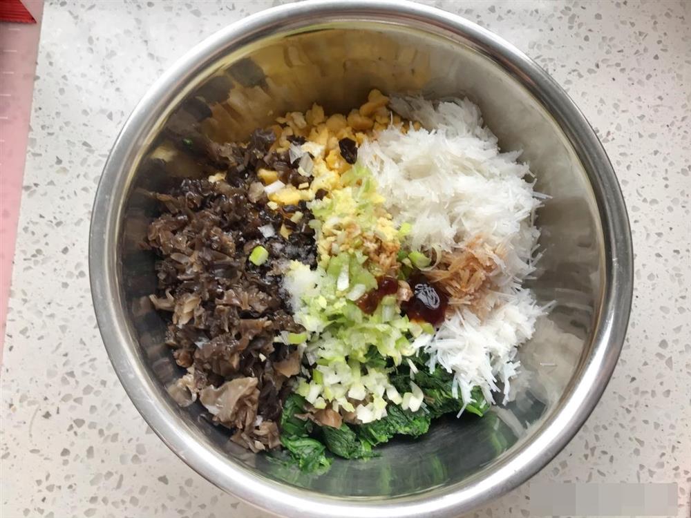 - Mộc nhĩ và miến cần phải ngâm trước thì khi làm bánh ăn sẽ mềm, mịn hơn. Cải bó xôi cần chần qua bỏ nước để loại bỏ bớt hàm lượng nitrit trong rau gây ảnh hưởng xấu đến sức khỏe và làm món ăn bớt nặng mùi hơn.