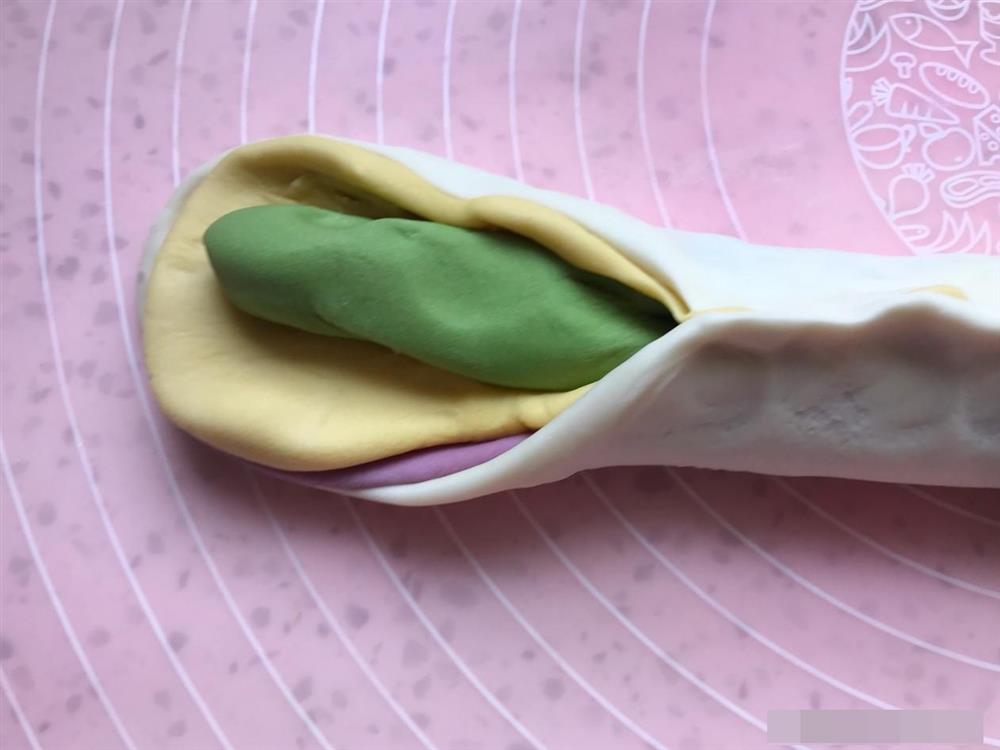 10. Bột mì bạn ve thành khối dài rồi chia đôi