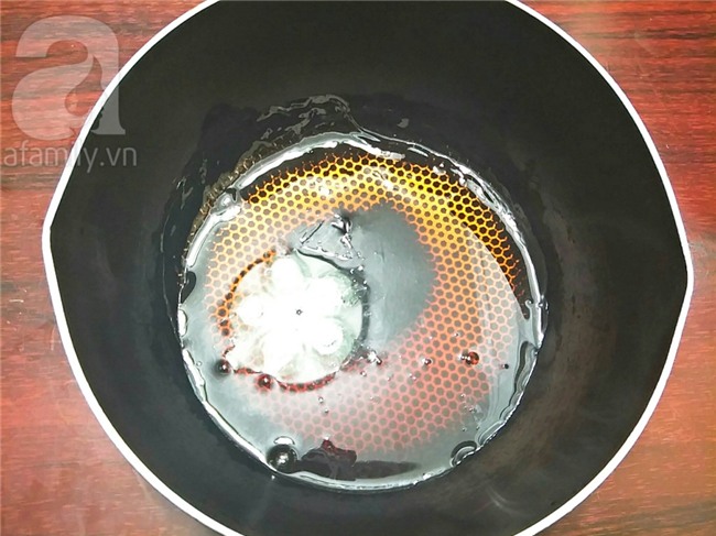 Cho nước vào nồi bật bếp nấu cho sôi nước sau đó cho bát bột rau câu đã trộn đều khi nãy vào, khuấy đều cho tan và nấu cho rau câu sôi 2-3 phút là tắt bếp.