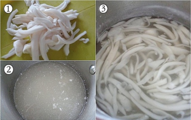- Khi thạch trong veo thì tắt bếp. Cho thịt dừa non và muối vào trộn đều.