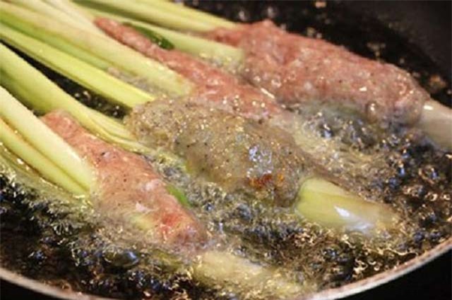 Bước 5: Đun nóng dầu ăn ở chảo, cho từng cây sả đã quấn thịt vào chảo, rán vàng đều. Trong quá trình rán, bạn nhớ lật đều để thịt vàng đều hai phía, gắp ra đĩa và thưởng thức.