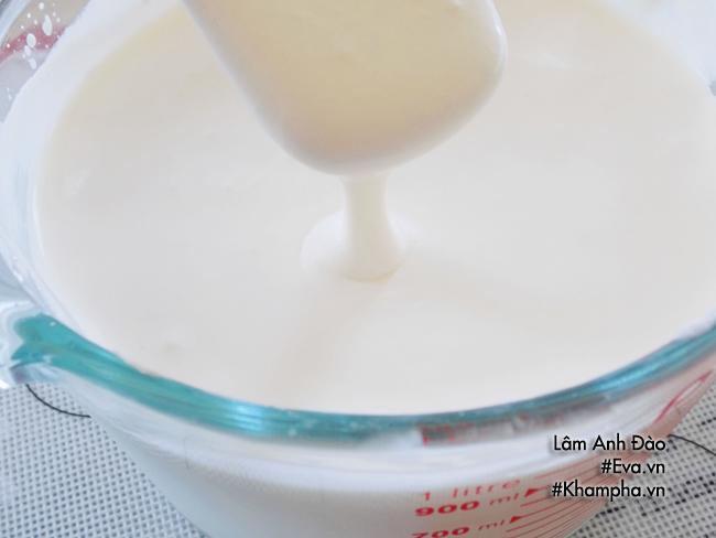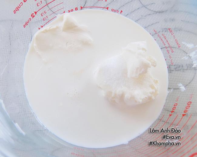 Bây giờ bạn cho hết sữa béo + sữa đặc + đường vào hòa chung, để nguội.