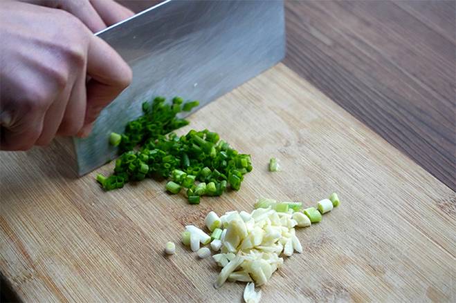 Băm nhỏ tỏi và hành. (Ảnh: Sohu)
