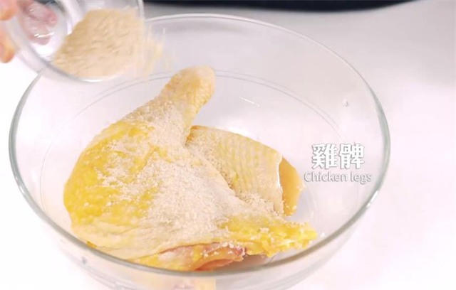 Đầu tiên bạn rửa sạch thịt gà rồi để cho thật ráo nước. Tiếp đó trộn đều 2 thìa cà phê muối với ½ thìa cà phê bột gừng vào với nhau.