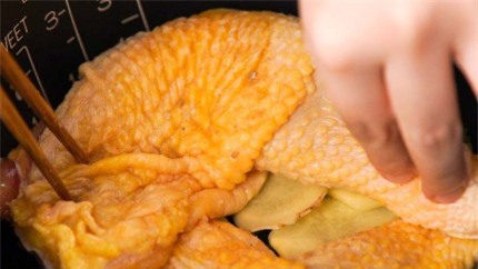 Thịt gà luộc theo cách này không chỉ tiện lợi mà còn giúp giữ lại được phần lớn các dưỡng chất có trong thịt do không bị hòa tan trong nước. Hành, gừng và rượu hòa quyện vào từng thớ thịt giúp cho miếng thịt gà dậy mùi thơm, giữ được vị ngọt nguyên bản của thịt mà vẫn đậm đà, thơm ngon.