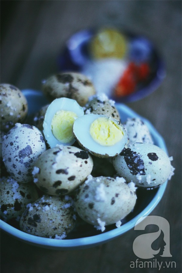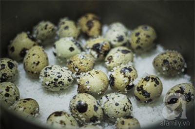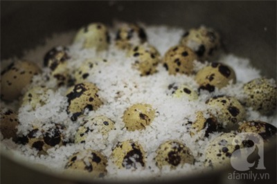 với trứng gà nhưng thời gian làm chín sẽ lâu hơn đồng thời lớp muối rắc