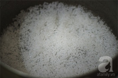 ![]() | ![]() Cho ½ số muối vào nồi, đun nhỏ lửa cho phần muối khô lại. |