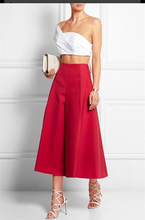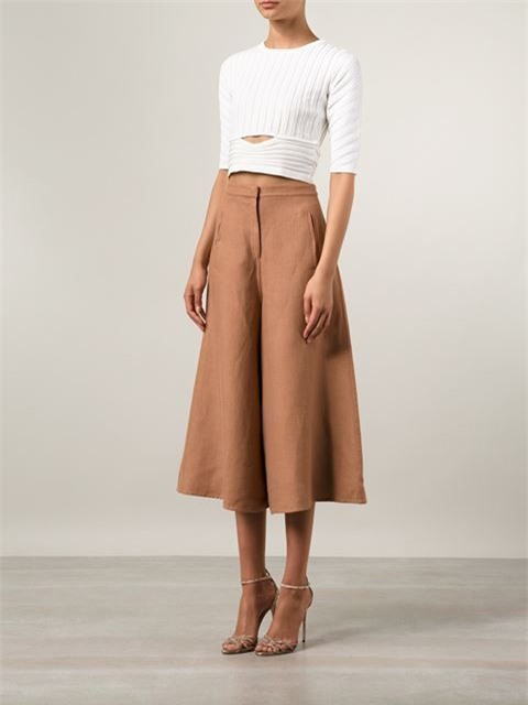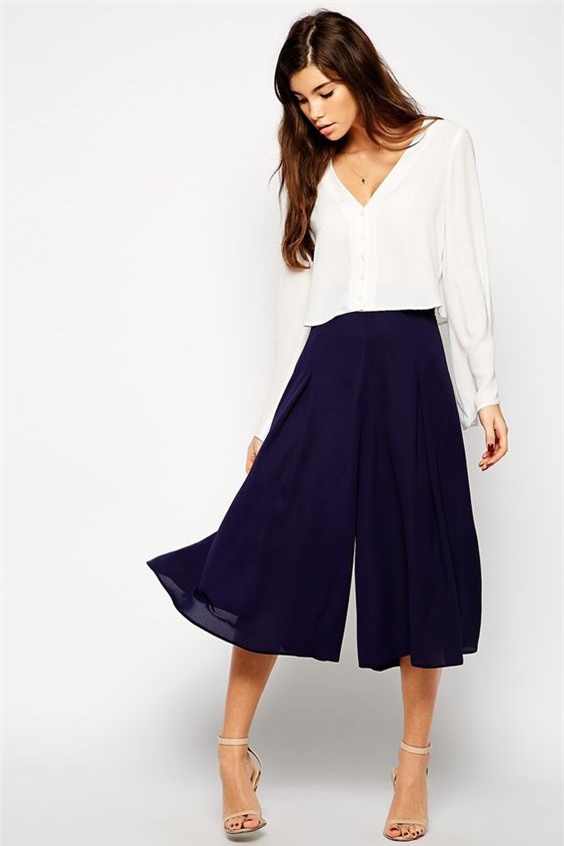 Một kiểu quần cullotes cách tân, ống rộng hơn so với truyền thống, có độ rũ như một chiếc váy xòe dành cho cô nàng nữ tính.