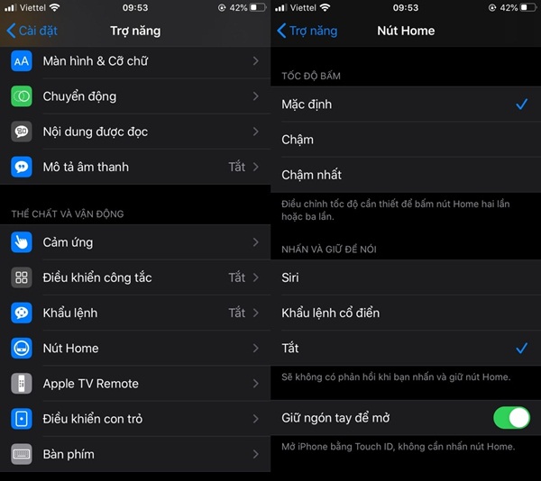 Bước 3: Chọn Home Button (Nút Home) trong phần Physical and Motor preferences (Thể chất và vận động).