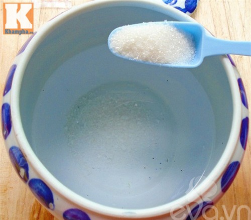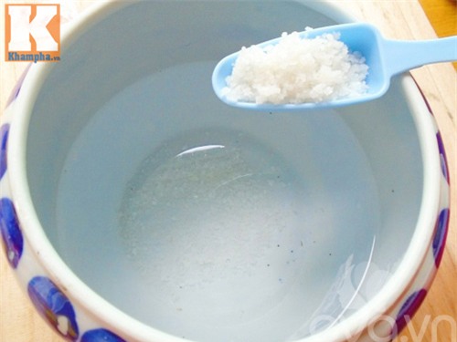 Bước 3: Đun một ít nước sôi để nguội chừng 30 độ, hòa khoảng 1 lít nước cùng 1 thìa đường, 3 thìa muối, 1 ít riềng, tỏi.