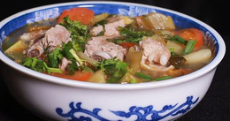 Rửa sạch cà chua, cắt múi cau hoặc thái hạt lựu. Hành lá và rau mùi rửa sạch, thái nhỏ.