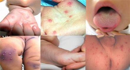 - Tổn thương da, niêm chủ yếu nằm ở miệng, lòng bàn tay, lòng bàn chân, gối mông.
