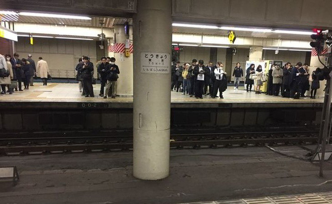 Đây là hình ảnh thường thấy tại các ga tàu điện ngầm của Nhật Bản. Mọi người luôn xếp thành hàng và bình tĩnh đi di chuyển theo hàng lối.