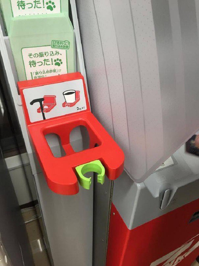 Bên trái của cây ATM sẽ có chỗ móc ô và để cốc nước.