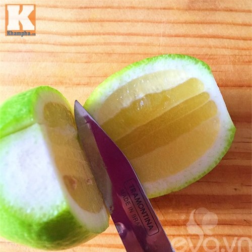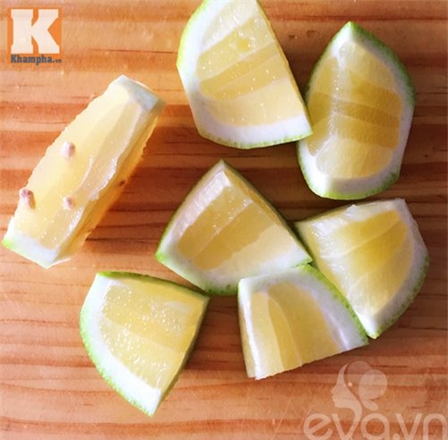 Tiếp tục thái 4 mặt là hết quả chanh, phần xơ và hạt nằm chủ yếu là ở giữa quả chanh và dính lại ở đấy.